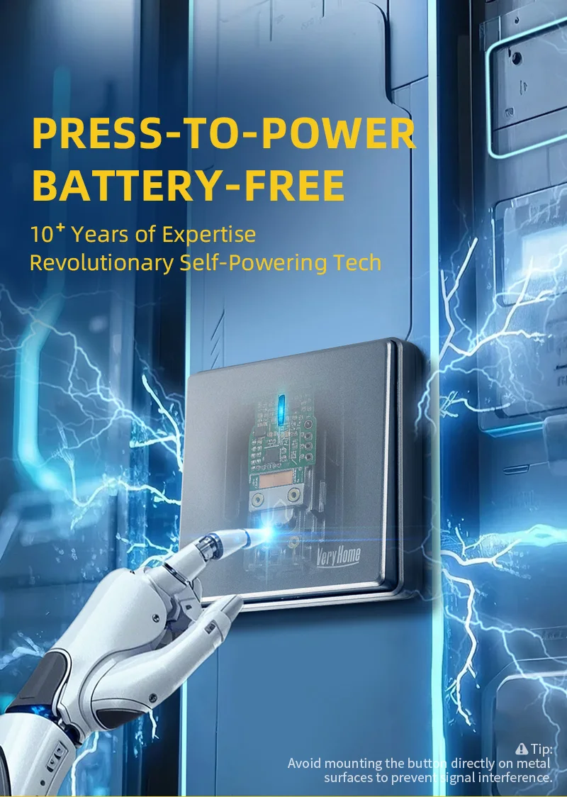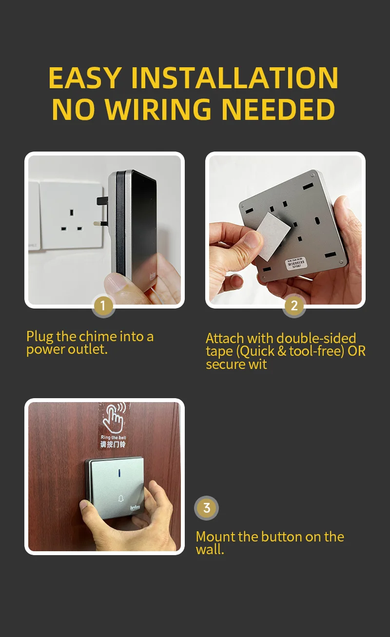 2025 Self-Powered Wireless Doorbell with Large Button, 120m Range, 90dB Adjustable Volume, Waterproof & Easy Installation