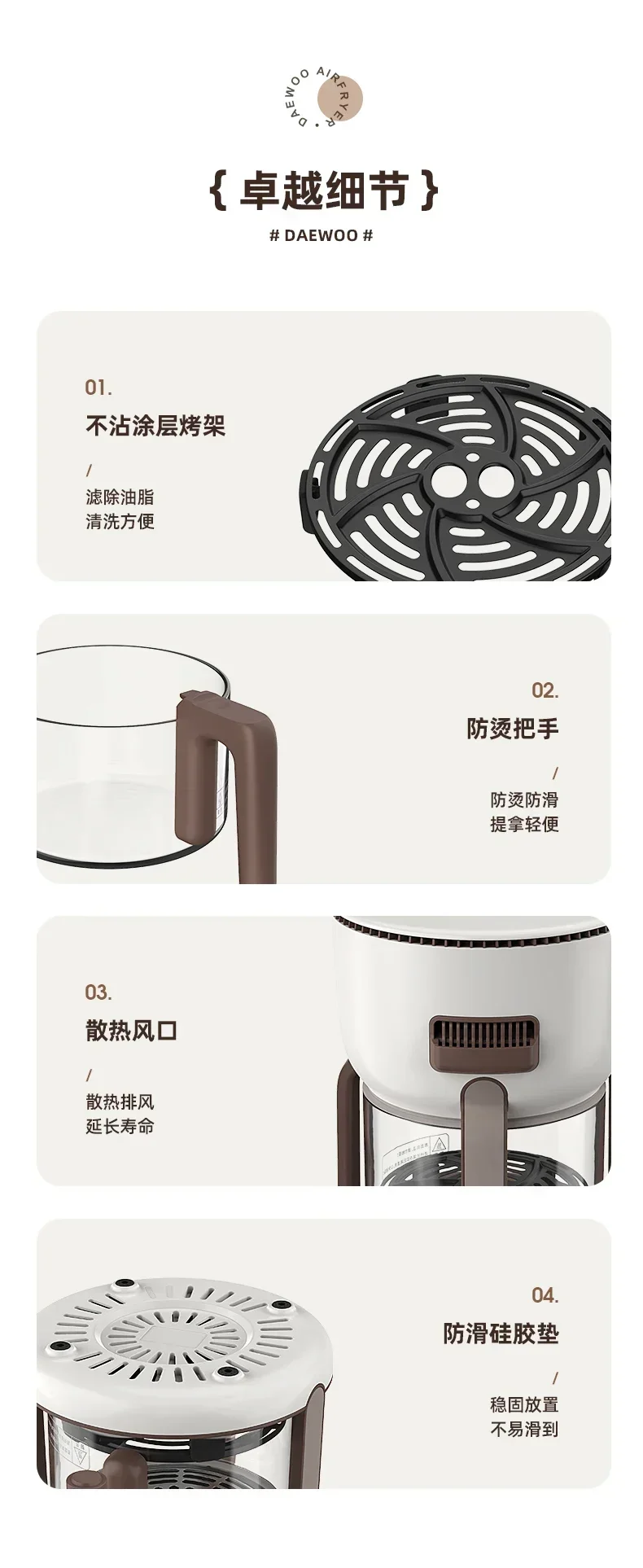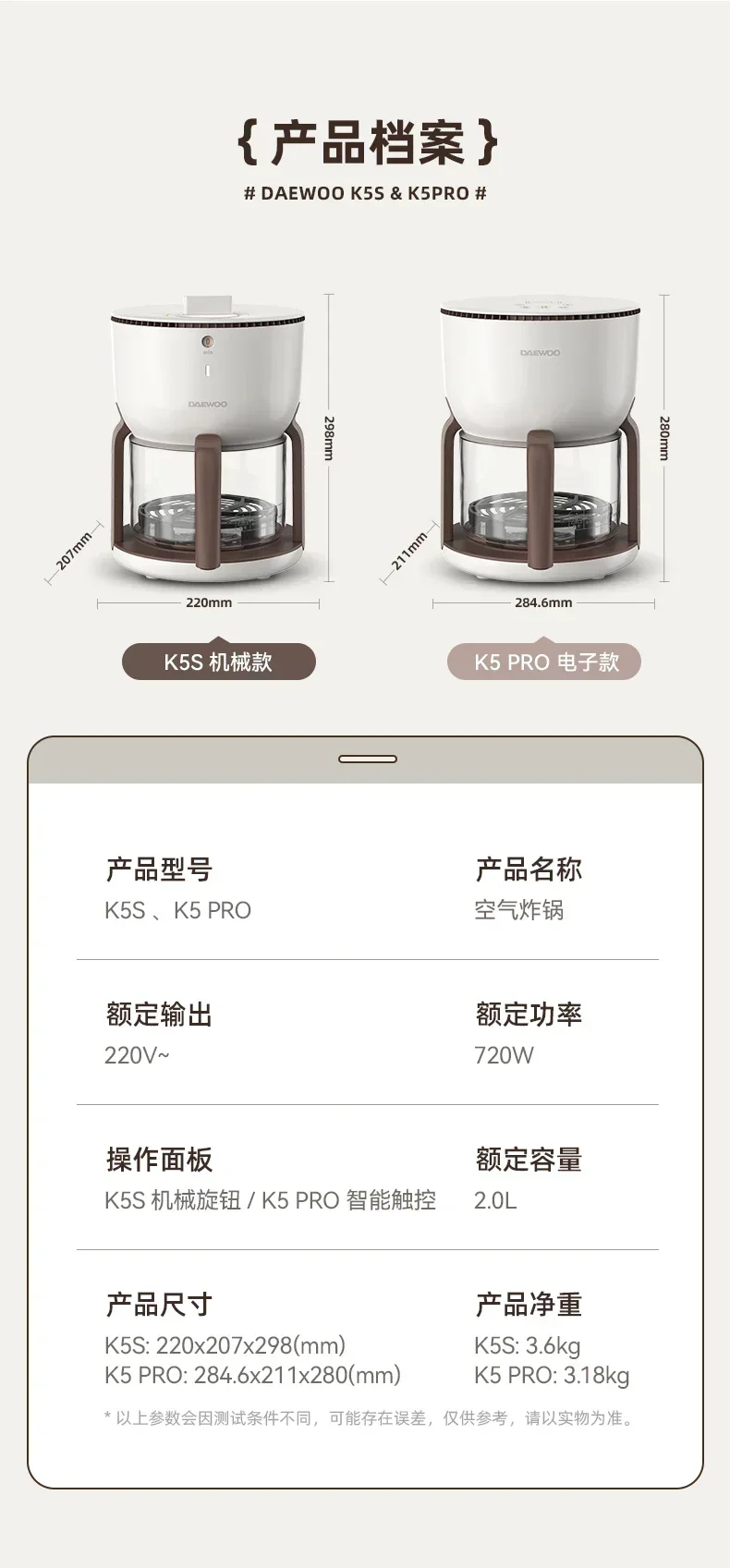 SPECIFICATIONS3C certificate number: 2023010712537535Brand Name: HAOYUNMAElectric fryer type: Visual fryerHeating part: Top heatingHigh-concerned chemical: NoneOrigin: Mainland Chinabrand: DAEWOOcapacity: 2L-3Lliner material: g...
