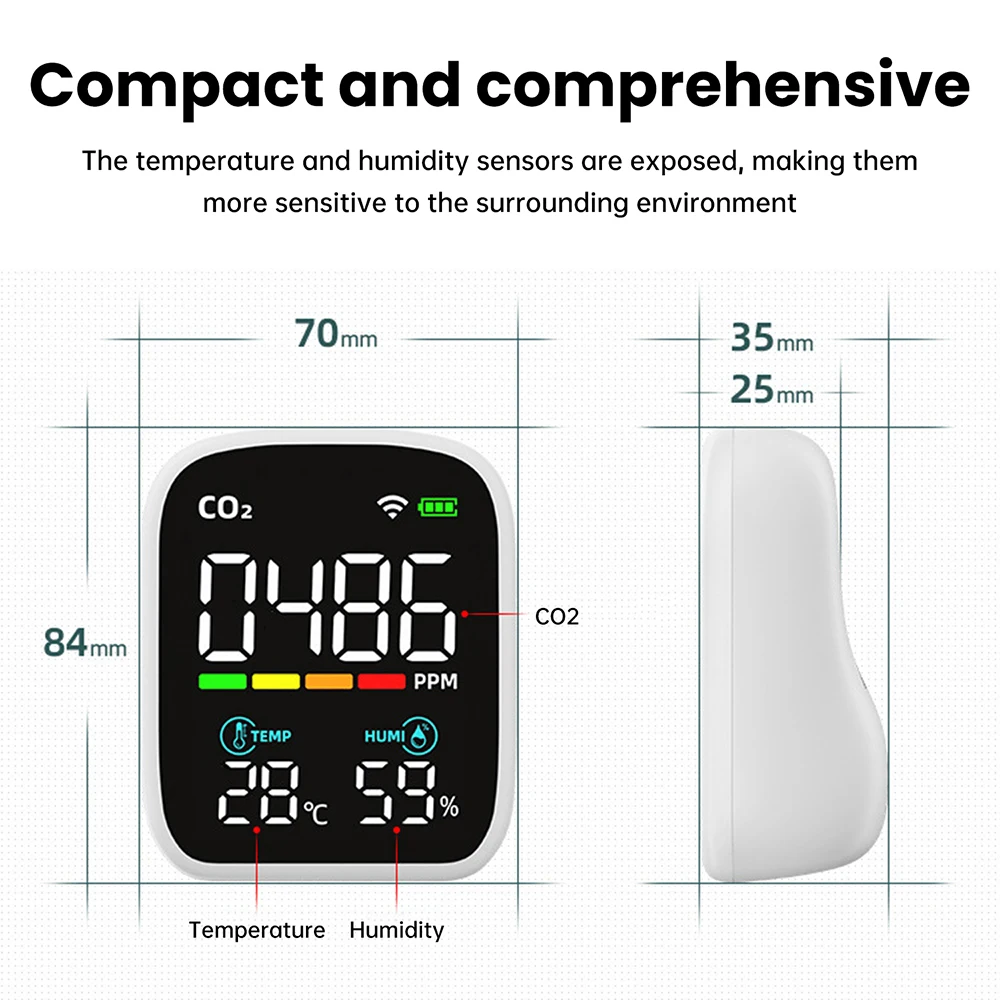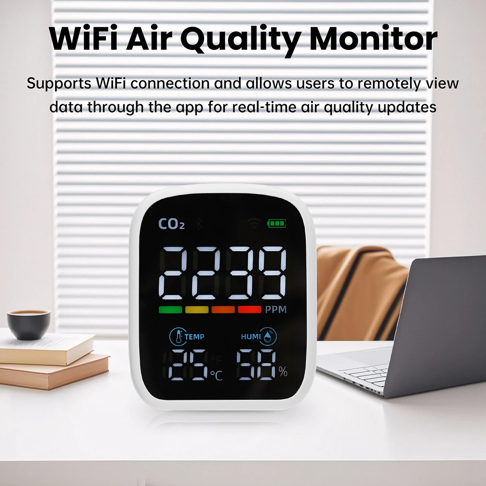 3-in-1 WiFi Smart Air Quality Monitor CO2/Temperature/Humidity NDIR Infrared Sensor Tester Carbon Dioxide Detector APP Control