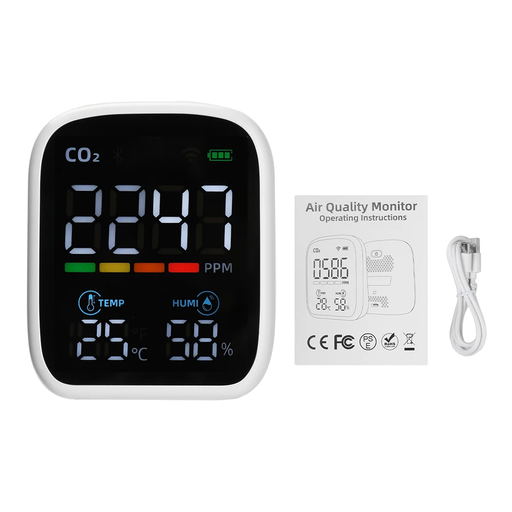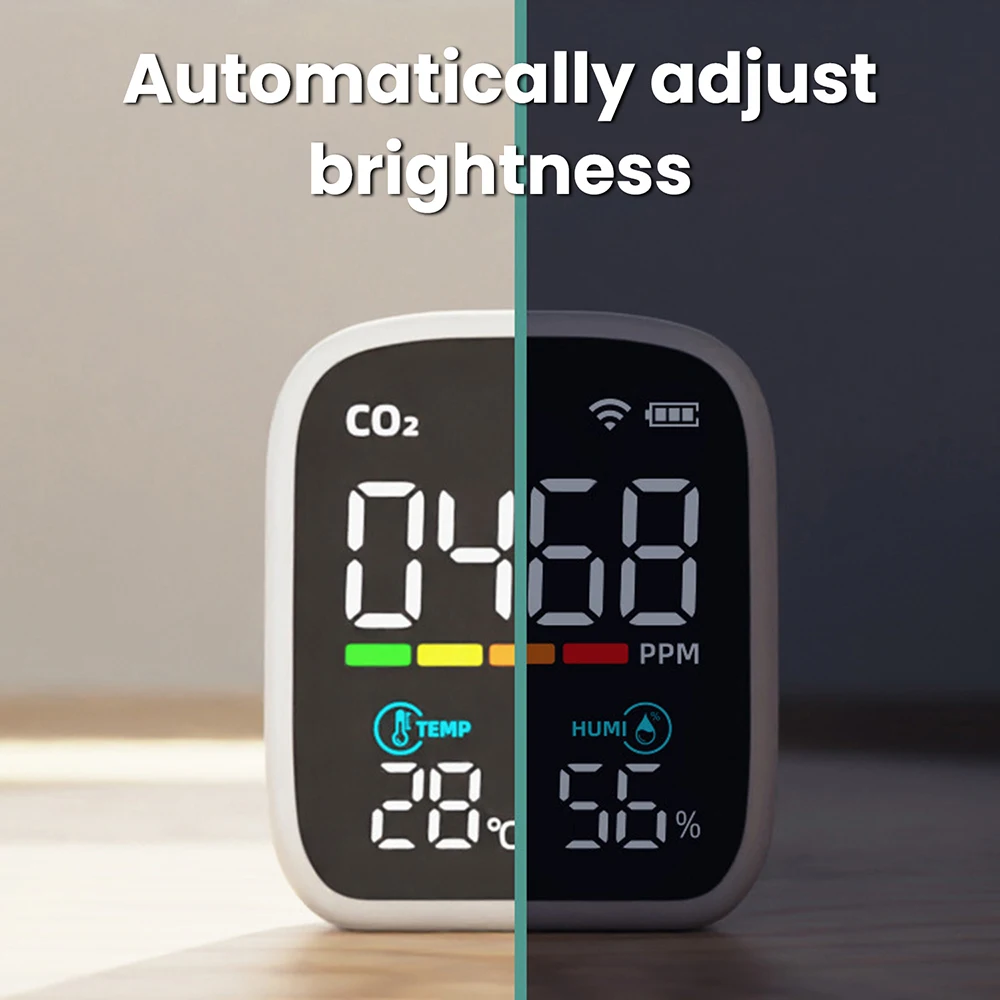 1. Triple-sensor precision monitoring of CO₂, temperature, and humidity; NDIR sensor delivers superior interference resistance and stability