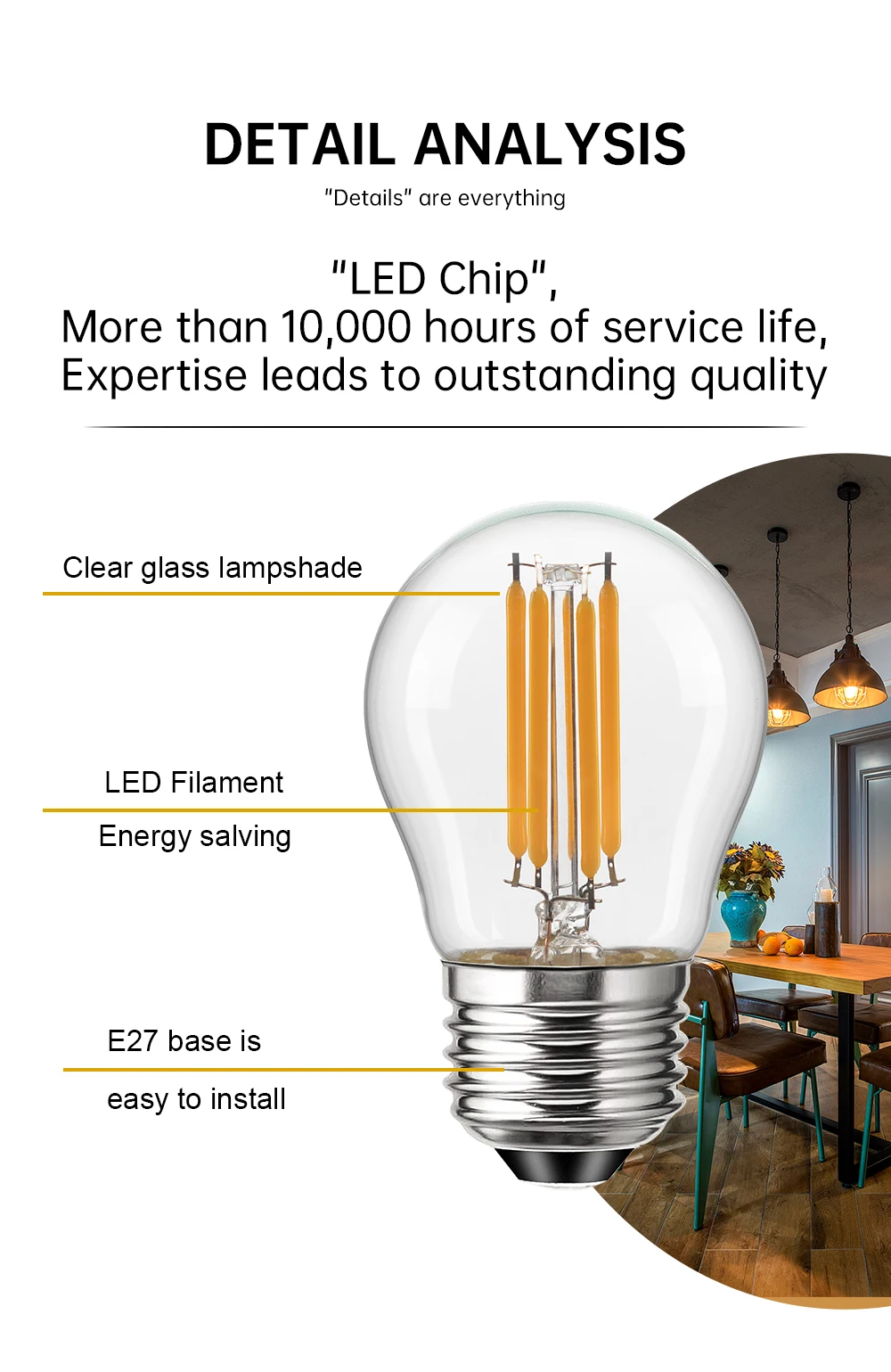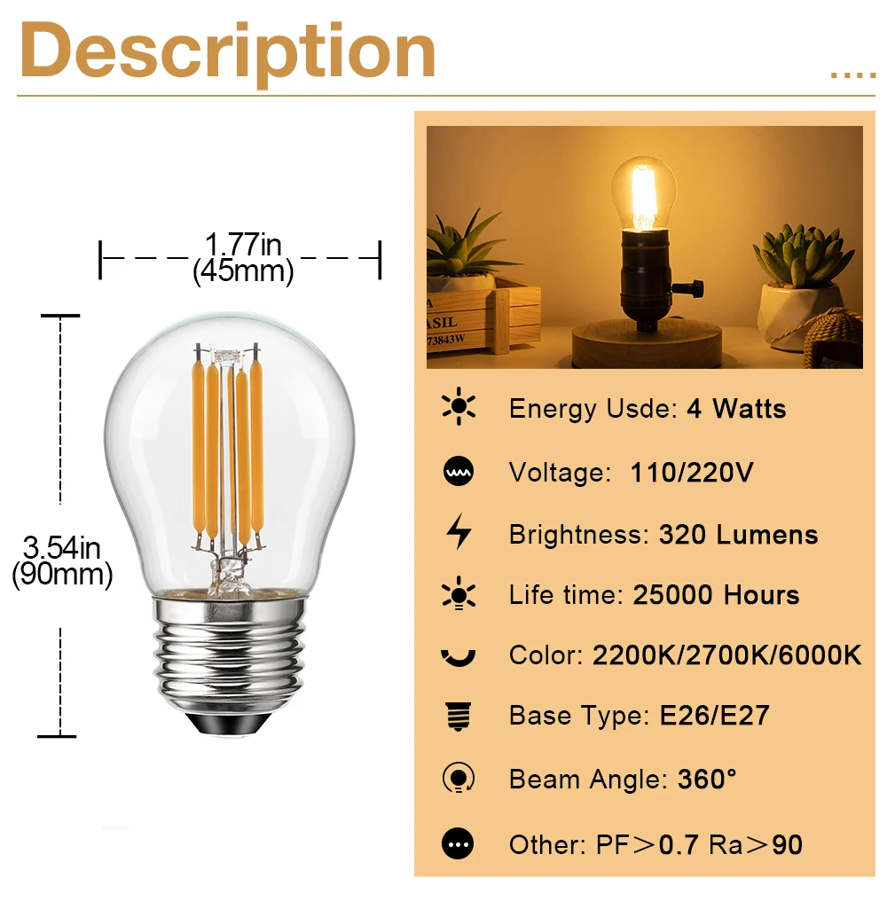 G45 Globe LED Light Bulb E26 E27 Base Edison Filament Ball Lamp 220V 110V 4W Mini Vintage String Light Replacement Bulbs