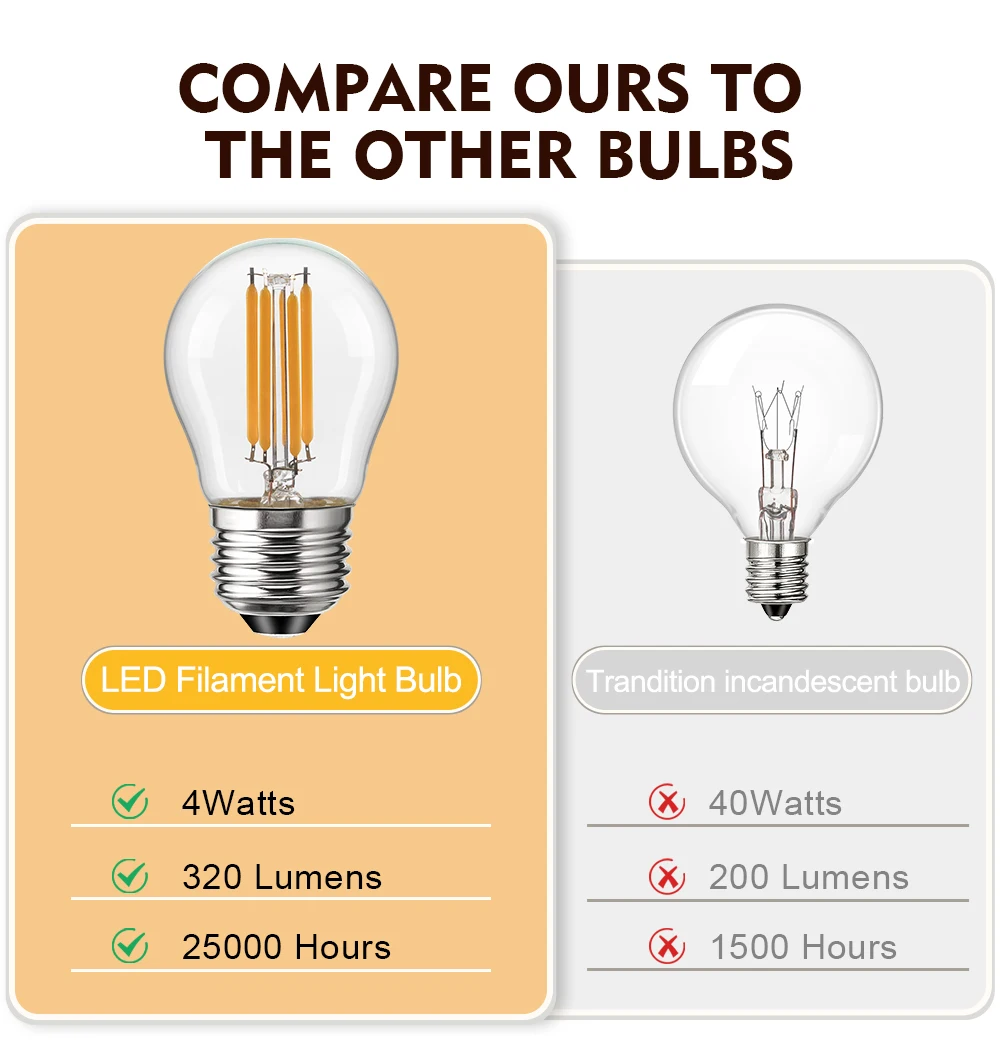·MultIfunction: With the E26 and E27 base, the bulbs have high compatibility and can be used for Vanity Lighting, Pendant Lighting, Wall Sconces, Home, Bedroom, Restaurant, Bistro Lights, Large Tents, Decorative Wedding Lights, Commercial Light Strings, Chandeliers, and any other commercial decoration, etc. Don’t ever hesitate to use them whenever you want