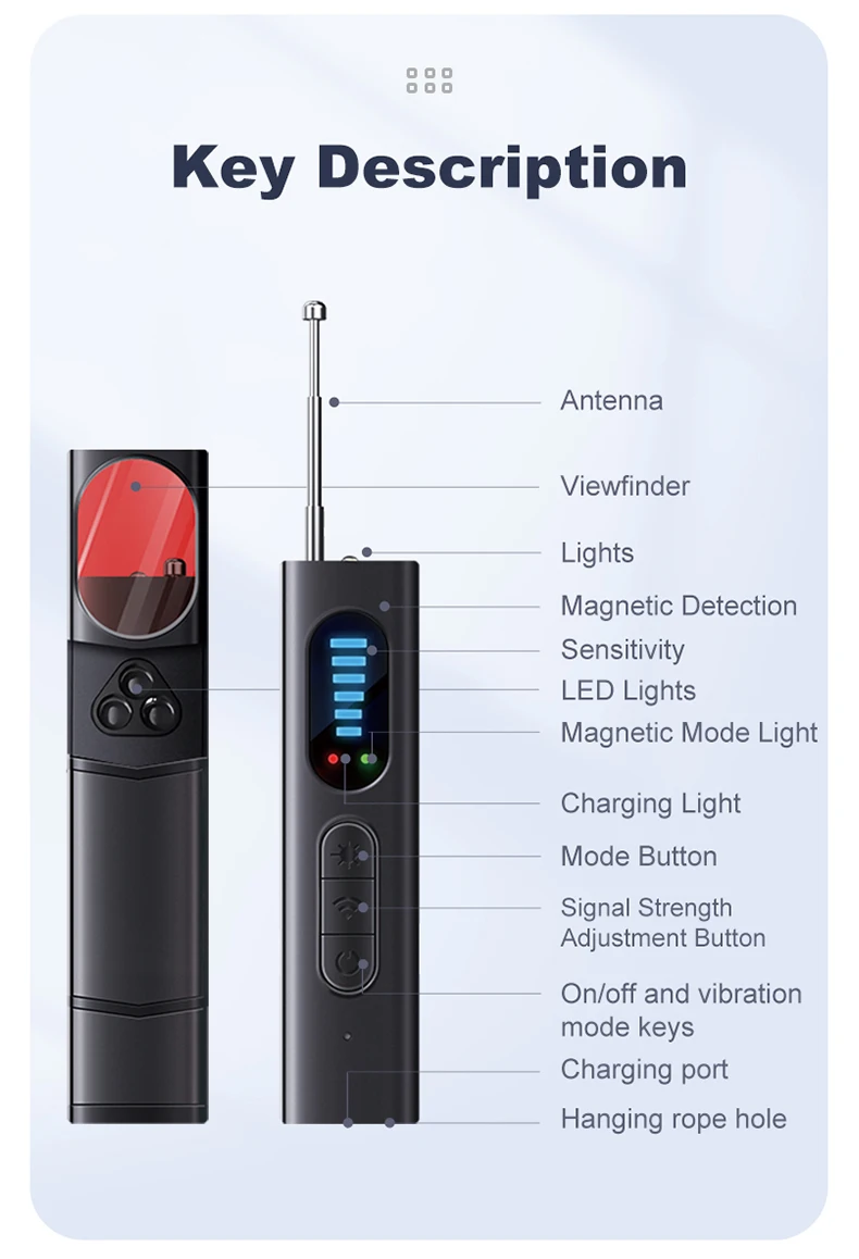 Hidden Camera Anti-Spy Detector Anti-monitoring Positioning Intelligent Wireless Signal Detector Hotel Camera Infrared Detector