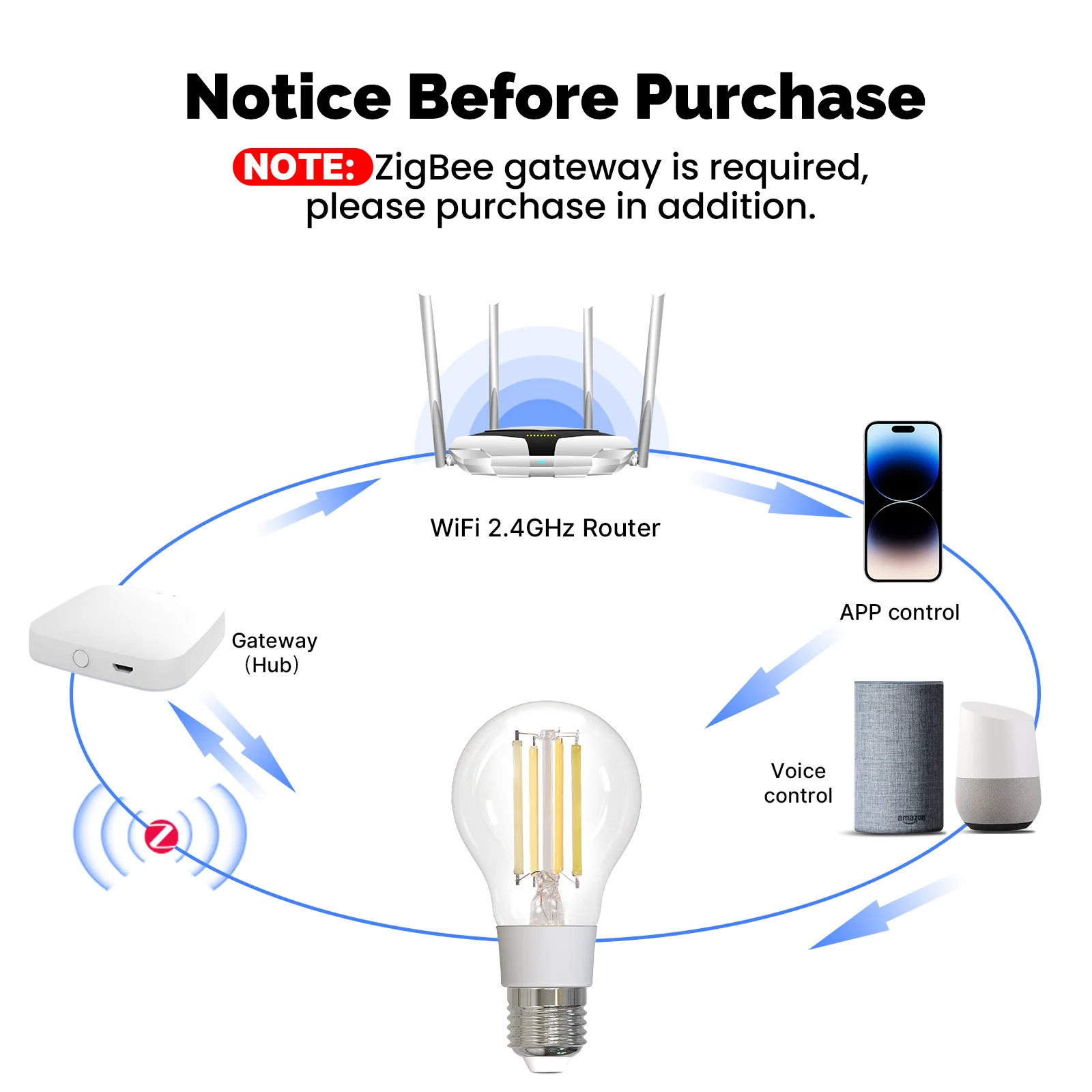 NOTE: ZigBee gateway is required,please purchase in addition.(Only ZigBee version need)