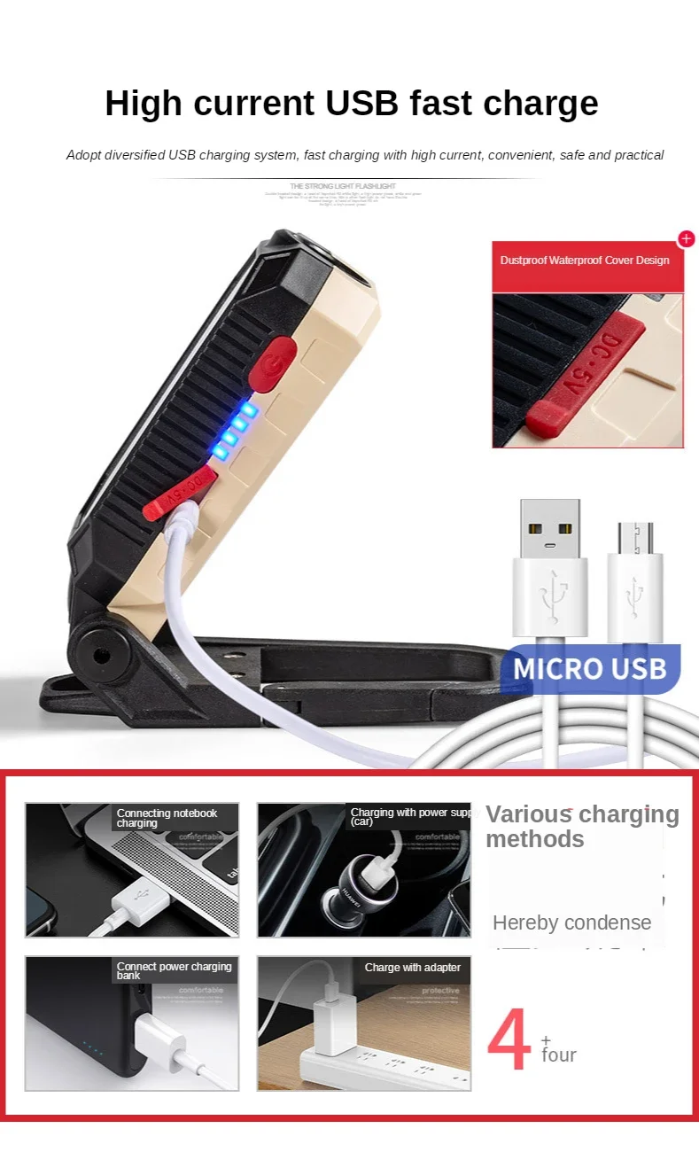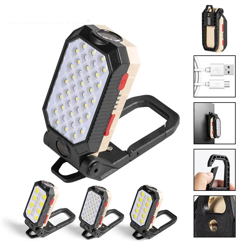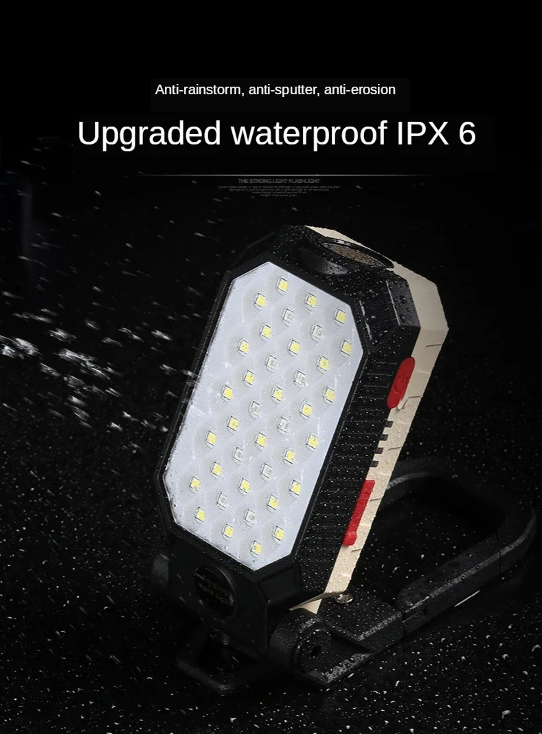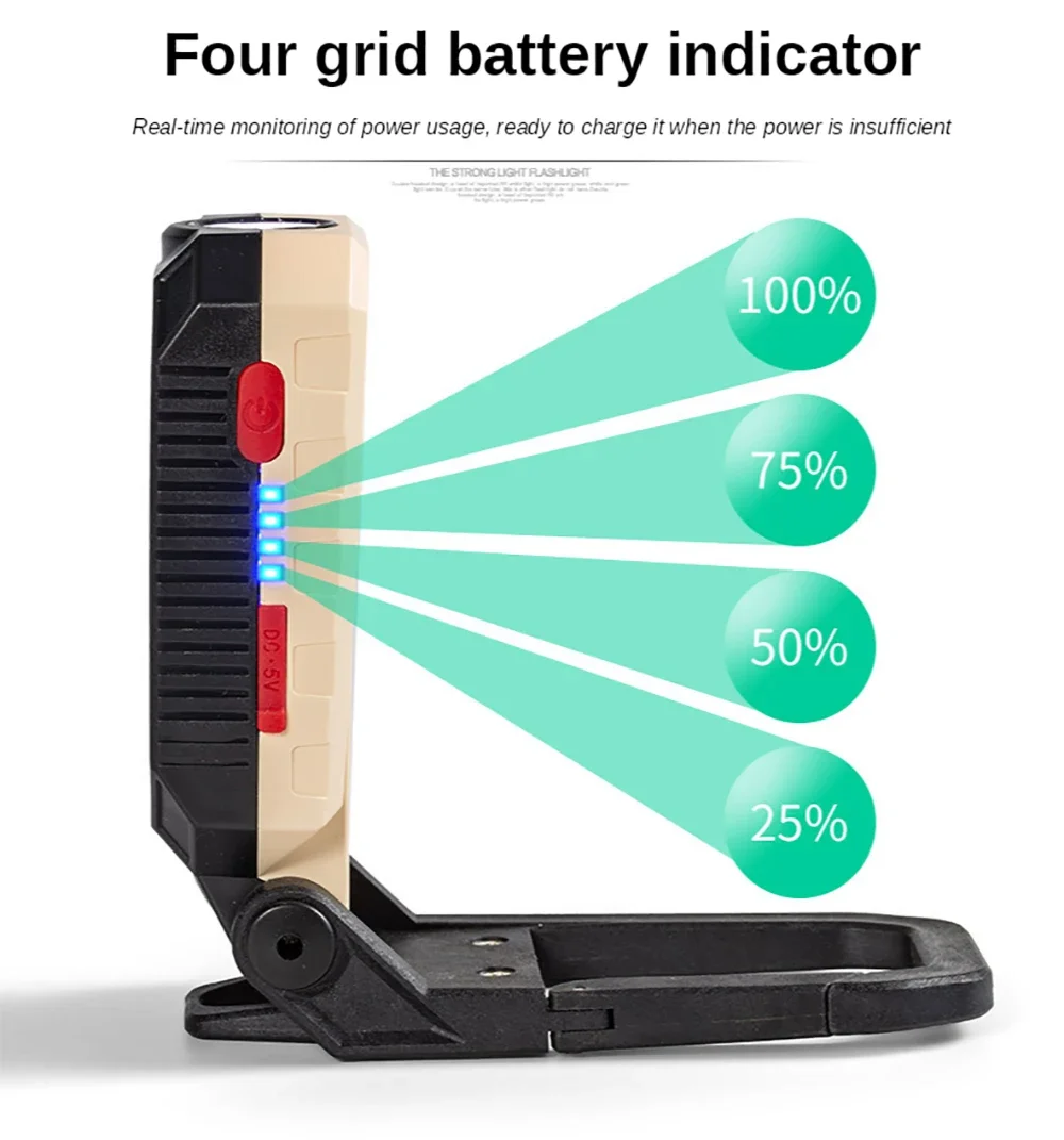 Multi-function Flashlight Floodlight Built-in Battery Magnetic Work Light Suction Power Display Car Repair Emergency Lamps